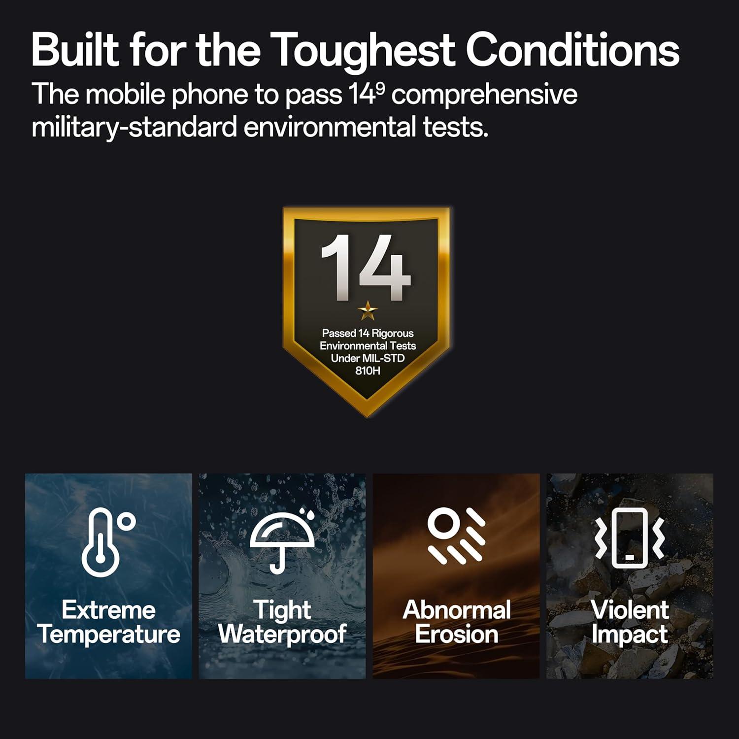 - DURABILITY CHAMPION- IP66 + IP68 + IP69 allround liquid proof. Military Standard citification tested under 14 rigorous environmental tests. 360° Armour Body with enhanced drop and impact resistance. Speaker Cleaning Function removes water from speakers. High-Strength Materials Aluminum alloy and fiberglass for durability. Corning Gorilla Glass Corning Gorilla Glass Victus 2 protects front screen from scratches and drops.